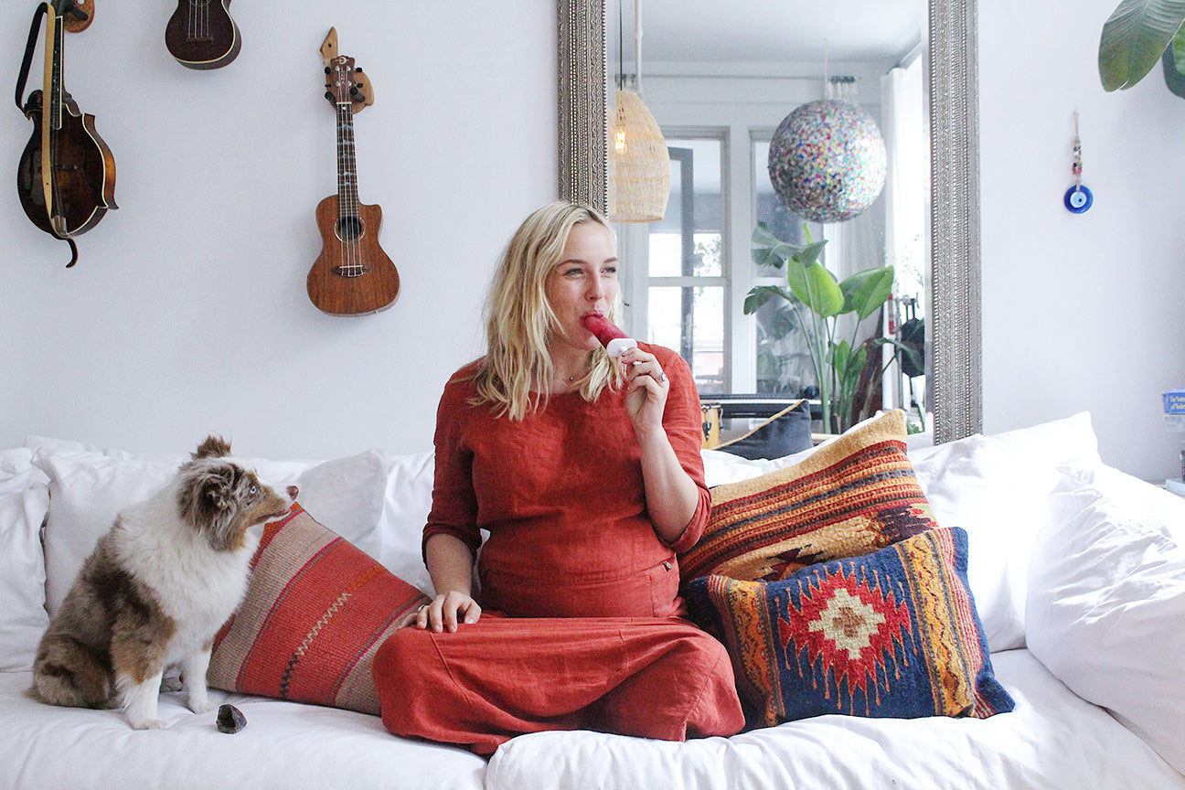 I've been working with a midwife + herbalist during my pregnancy, and she's suggested I brew up a specific herbal infusion every night and drink as a tea. Herbal infusions, for those not familiar, are made by placing herbs and tea leaves to sit overnight in an airtight container with hot water. As the hours pass, the leaves mineralize, releasing ample amounts of antioxidants, polyphenols and bioflavanoids, creating an incredibly potent elixir with herbs at their most bioavailable. With the temperature rising, I'm forced to get creative about how to stay cool— and have since turned my infusions into popsicles. It's genius for summer, healing, and ultimately oh-so tasty.